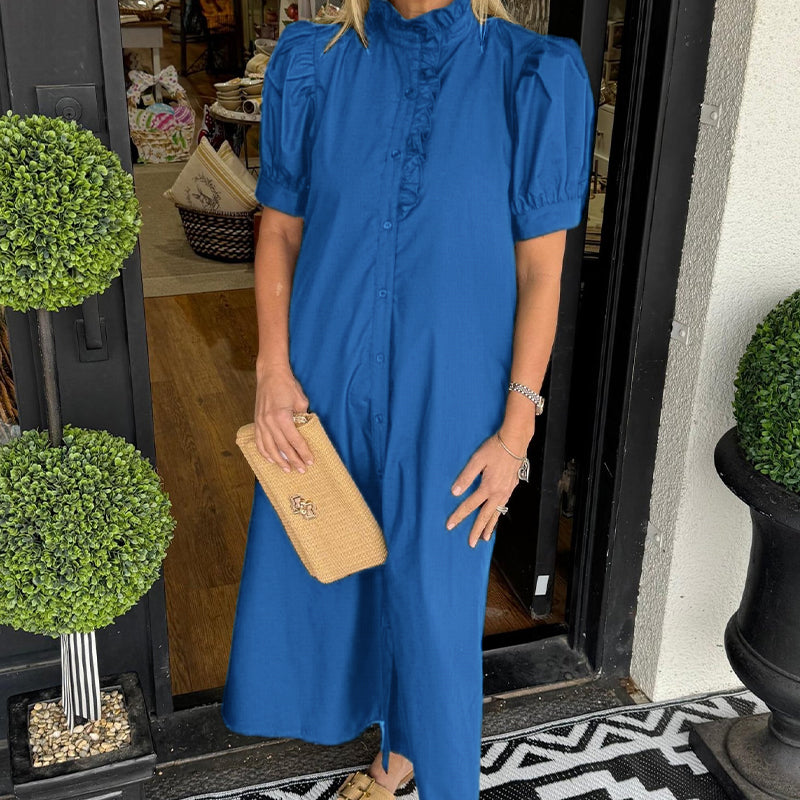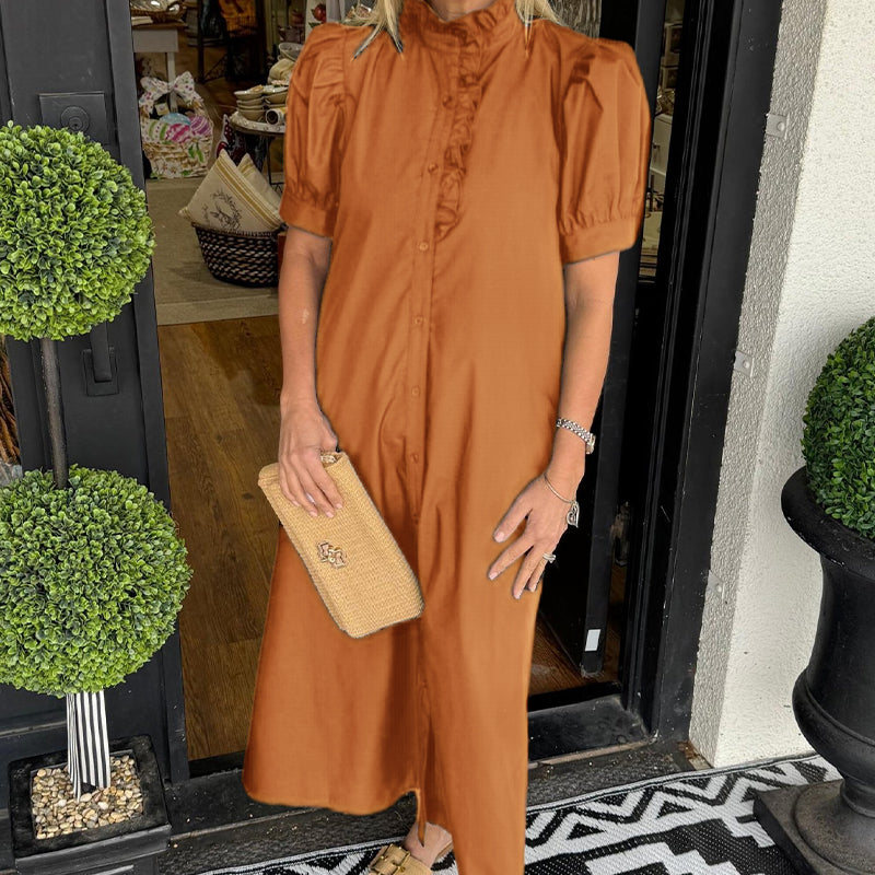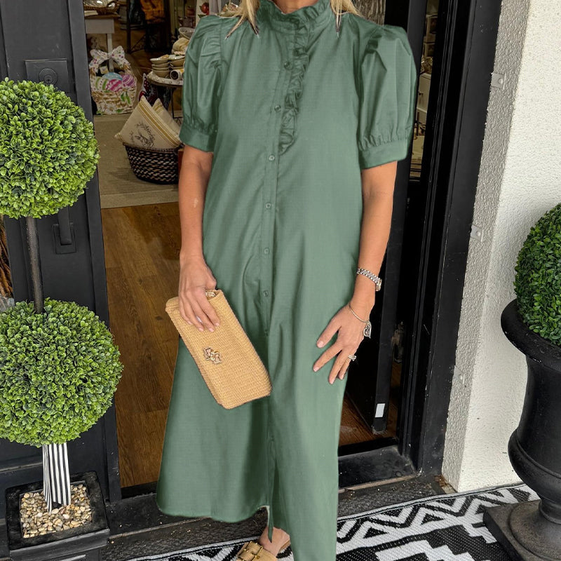Women's Casual Solid Color Standing Collar Button Down Dress