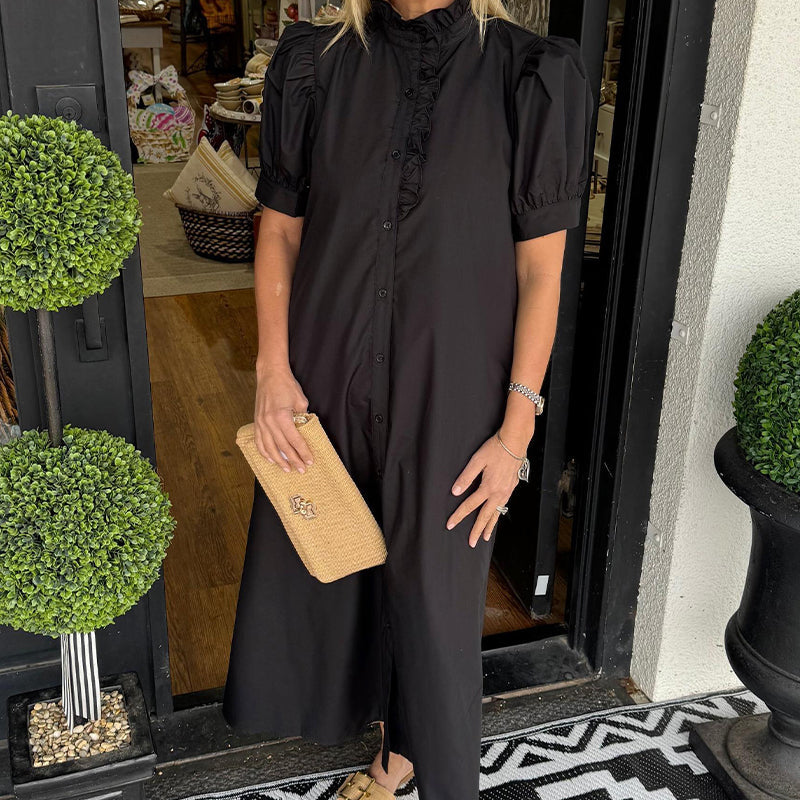 Package Included: 1*Women's Casual Solid Color Standing Collar Button Down Dress