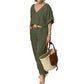 Package Includes: 1*2 Piece Set: V-Neck Loose Top and Pants with Pockets